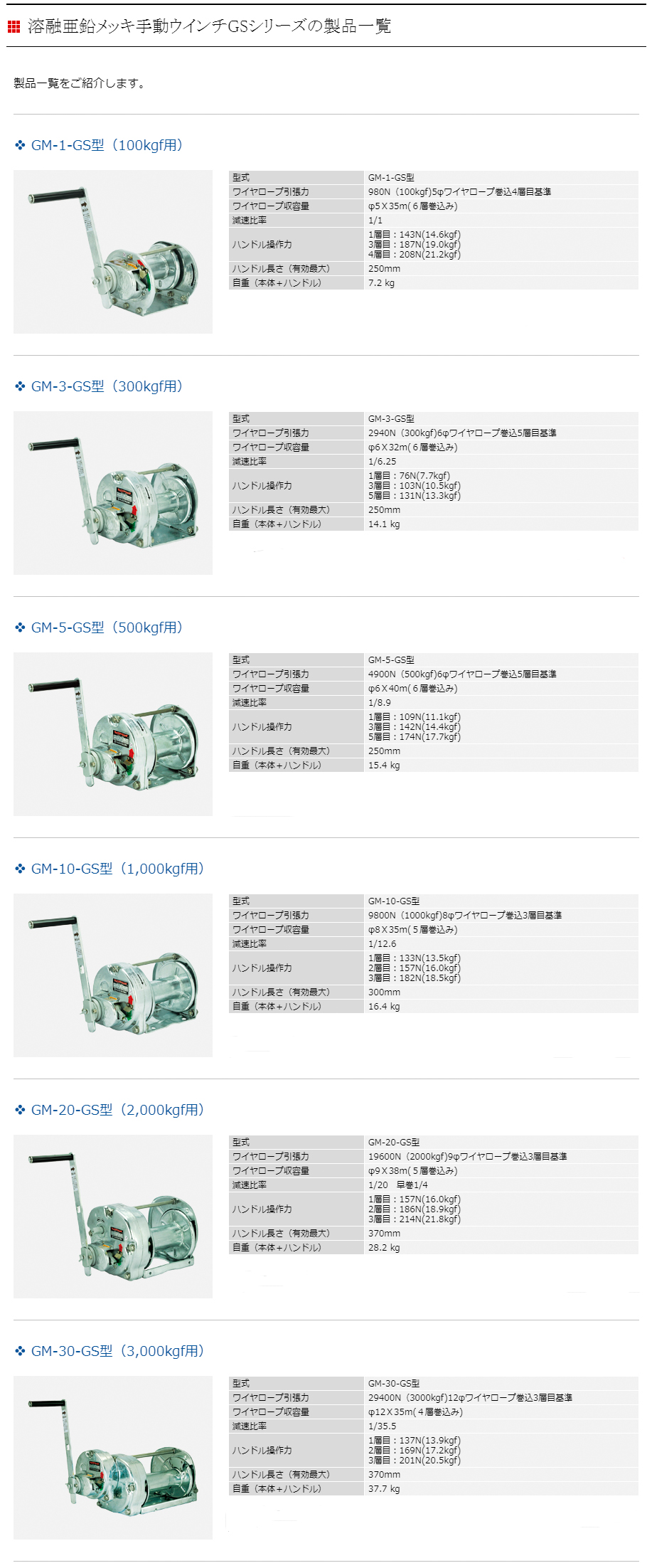 MAXPULL手動絞盤GM-20-GS型(2,000kgf用)