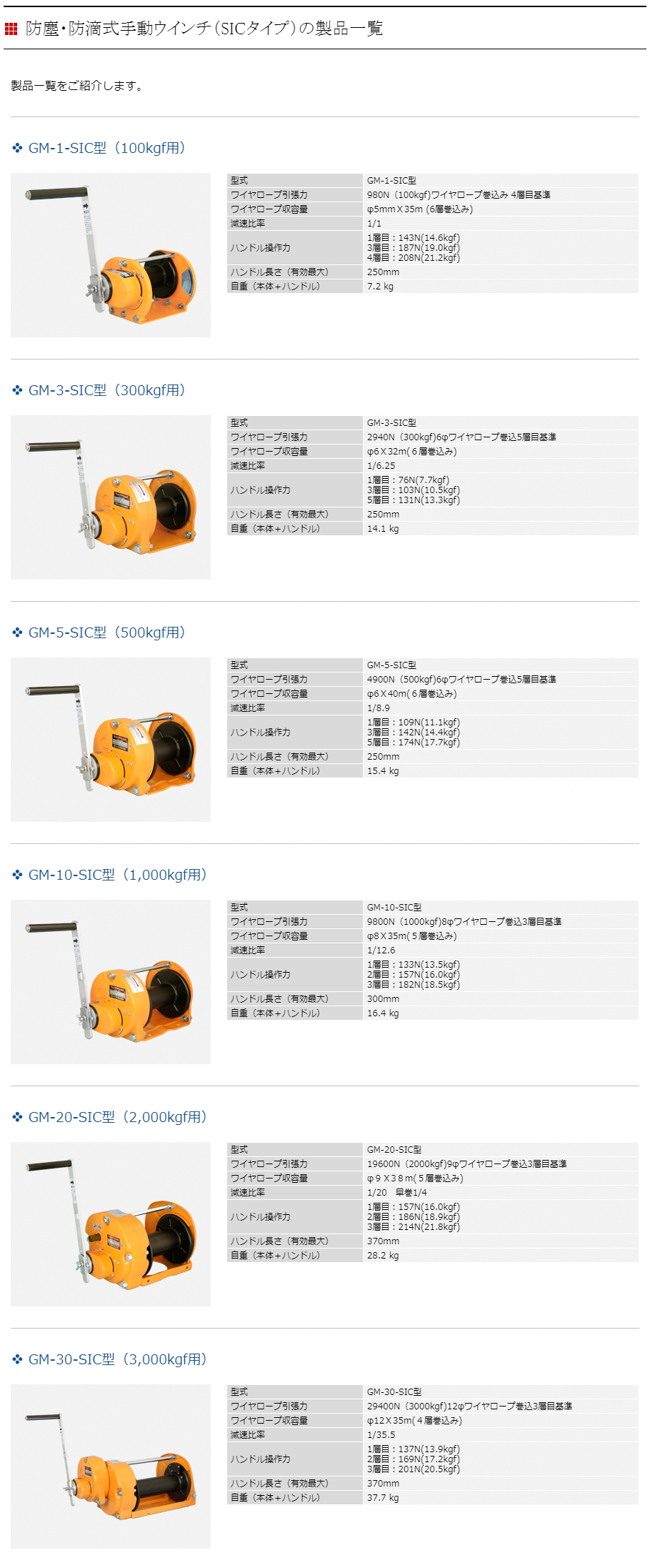 MAXPULL防塵防水手動絞車GM-30-SIC型(3,000kgf用)