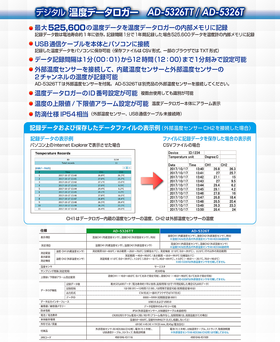 AND(A&D)數字溫度數據記錄器AD-5326TT