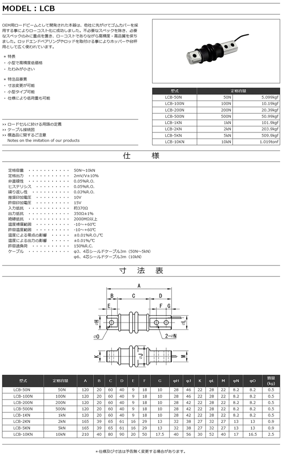特殊測(cè)器荷重傳感器LCB-2KN