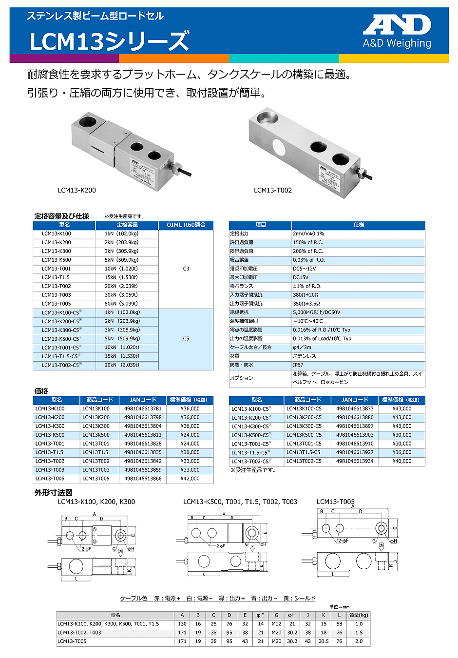 AND(A&D)負載傳感器LCM13-T003